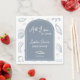 Centered on the napkin is a dusty blue arch outlined with a thin white inner line. Inside the arch: