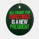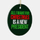 All I Want for Christmas is a New President. Political humour anti trump Christmas ornament gift for the holidays in red and green script for a democrat.