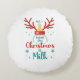 All I Want for Christmas Is Milk” Cute Reindeer Round Cushion