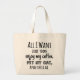All I want is to enjoy my coffee, pet my cat, and chillax. This text design is all about relaxation and good vibes. It's shown here on a large tote bag. More colours and styles are available. It's a cute design for cat ladies that just want to relax!
