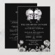 This black and white 'till death do us part' gothic floral skulls wedding invitation can be personalised with your information and wedding details in modern typography. Designed by Thisisnotme©