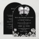 This black and white 'till death do us part' gothic floral skulls wedding arch invitation can be personalised with your information and wedding details in modern typography. Designed by Thisisnotme©