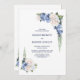 Invite your friends and loved ones to your wedding to witness and celebrate the beginning of your lifelong journey with this elegant blue and white floral invitation. The customisable text allows you to effortlessly add your names, wedding date, and the necessary details of your celebration. Designed for the budget-savvy couple, the reception venue location, RSVP response request, accommodation details, and any other information your guests may require can be included on the reverse side of this invitation, saving money on extra stationery. A variety of paper types and corner styles are available for your unique invitations, along with the option to download.