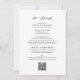 All in One Elegant Black Calligraphy Wedding Invitation... Our unique "All in One" black and white wedding invitation features black calligraphy script combined with sans serif text for a simple classic and elegant wedding invitation. The back of the invitation contains all of the details you would typically see on separate cards in the wedding packet. On the back there is also a QR code graphic template you can easily replace by typing in your wedding website's URL to generate the new code. You can do this at the same time you are revising the example invitation text with your own wedding information on the personalisation template.