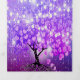 Tri-Fold All In One Elegant Purple Plum Lilac Blue and Pink Heart Leaf Tree Under the Stars FairyTale Fairy Lights Tri-Fold Heart Leaf Wedding Invitation includes a cut and send postcard RSVP. Perfect for Outdoor Garden or Boho Forest Woodland Woodsy or Farmhouse Barn Wedding Theme.