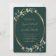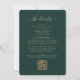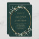 Eucalyptus Gold Metallic All in One QR Code Emerald Green Wedding Invitation with Rounded Corners... Our double sided "front and back" luxe botanical wedding invitation features a printed gold oval frame embellished with emerald-hued eucalyptus leaves over an elegant emerald green background. The back of the invitation contains all of the details you would typically see on separate cards in the wedding packet. This modern style wedding invitation was designed to be both elegant and budget conscious... not to mention time-saving for busy brides-to-be. On the back there is also a QR code graphic template you can replace with your own code simply by typing in the URL of your wedding website... right on the personalisation template where you also revise the example text with your own details.