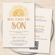 Invite family and friends to your sun-themed baby shower with this cute sunshine boys' baby shower invitation.