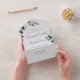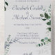 This All in One Invitation which includes the RSVP and Return Address features several Eucalyptus stems with leaves and Script Typography. The invitation is also customisable. Just insert your wedding particulars where it says, Personalise this template. I've marked the necessary template to aid you in this customisation.
