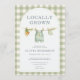 Rustic sage green gingham all in one baby shower invitation featuring a charming locally grown theme. Designed with a convenient tear-off RSVP postcard for easy responses, creating a warm and welcoming experience for guests. Perfect for baby showers, baby sprinkles, and gender neutral celebrations with a cozy farmhouse feel. Ideal for gathering friends and family in a relaxed, nature-inspired setting. Editable text. Clean print-ready layout.