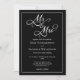 Celebrate your special day with this elegant black and white all-in-one wedding invitation card. Featuring "Mr and Mrs" in a beautiful script calligraphy, this classic design exudes timeless charm and sophistication. The front of the card presents your names and wedding details in a chic, minimalist style, perfect for modern couples who appreciate a touch of understated elegance. Flip the card over to find all the details of your reception, beautifully arranged to complement the invitation’s sophisticated design, with a qr code that you can customise to point to your wedding website. Perfect for those seeking a streamlined yet stylish invitation.
