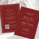 A deep red old money all in one wedding invite featuring refined typography on the front and an elegant script layout on the back. Designed with wedding details and a QR code RSVP for a seamless guest experience. Perfect for classic, formal, and luxury celebrations with a timeless aesthetic. Ideal for couples who love rich color palettes, traditional elegance, and a sophisticated editorial wedding style.