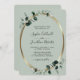 Eucalyptus Gold Metallic All in One QR Code Sage Wedding Invitation with Rounded Corners... Our double sided "front and back" luxe botanical wedding invitation features a gold metallic oval frame embellished with emerald-hued eucalyptus leaves over a light sage green background. The sage back of the invitation contains all of the details you would typically see on separate cards in the wedding packet. This modern style wedding invitation was designed to be both elegant and budget conscious... not to mention time-saving. On the back there is also a QR code graphic template you can replace with your own code simply by typing in the URL of your wedding website... right on the personalisation template where you also revise the example text with your own details.
