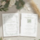 Fully Customizable elegant sage green floral wedding invitation with details on the back.