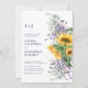 All in One Watercolor Sunflower and Lavender Monogram Wedding Invitation... Sunflower symbolism: happiness, joy, enduring love. Lavender flower symbolism: love and devotion, calmness. Our "All in One" floral wedding invitation features a beautiful bouquet of watercolor sunflowers and lavender setting off the bride and groom's monogram initials and the invitation text beside it. The dark lavender back of the invitation contains all of the details you would typically see on separate cards within the wedding packet. This modern style double-sided wedding invitation was designed to be both elegant and budget conscious... not to mention time-saving. On the back there is also a QR code graphic you can replace with your own code by typing your wedding website URL on the personalisation template. All example text can be easily revised with your own information on the same template.