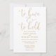 This gold elegant script wedding invitation can be personalised with all your special wedding day information on the reverse, including your RSVP, accommodation, and additional details. Designed by Thisisnotme©
