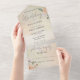 Discover the epitome of convenience and elegance with this exquisite floral all-in-one wedding invitation. Our thoughtfully designed invitation seamlessly integrates all essential wedding details in one stunning package, eliminating the need for multiple cards. Crafted with precision and personalised to reflect your unique style, this invitation will promise to set the perfect tone for your special day.