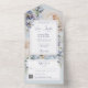 Your wedding day is a reflection of your unique style and love story. This All-in-One modern wedding invitation combines contemporary elegance with a touch of bohemian charm, featuring a delightful pale blue bohemian flower design that will captivate your guests and set the tone for your special day. The All-in-One wedding invitations are both beautiful and practical by combining the wedding invitation with an easy to remove perforated RSVP postcard. They are also quick and easy to prepare for mailing. Simply address the invitation, fold the back flap and seal with the included clear stickers. Once your guests receive the pre-addressed invitation they simply tear off the perforated RSVP card and drop it in the mail. The addition of the QR code allows your guests to easily access your wedding website for information including reception details and dinner choices!