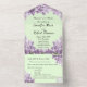 This classic and elegant wedding all in one invitation is perfect for a simple and elegant wedding theme. The lilac border enhances the simplicity of the single colour sage background, highlighting the important details of your event. Every test field can be edited to add your personal touch to the invitation. Space is provided for you to note your website and also if you have a QR code to assist your guests with information.