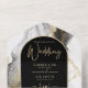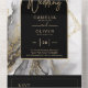 Introducing our luxurious black and gold wedding stationery collection, featuring a stunning smokey black and white with gold accents agate look backdrop and arch frame for the text. This design is perfect for couples who want to add a touch of elegance and sophistication to their wedding stationery.