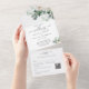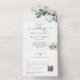 All Inclusive White Roses Sage Leaves Wedding RSVP In One Invitation