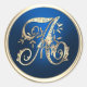 All Initials Gold Monogram Blue Classic Round Sticker
