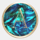 ALL INITIALS Gold Monogram on Blue Green Wavy Classic Round Sticker