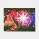 A bright start hanging in a Christmas tree against a sparkling bokeh background in all the colours of the rainbow.