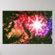 A bright start hanging in a Christmas tree against a sparkling bokeh background in all the colours of the rainbow.