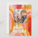 All is bright is the theme of this whimsical brightly coloured holiday photo card featuring rainbow arches in bold pinks, oranges and golds. A photo template is included to personalise with your selected photo. The text template on the back of the card has a pre-written greeting that you can edit as you like or purchase as written. It's a colourful life, and this card projects that happy vibe!