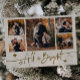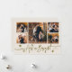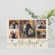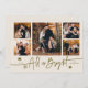 Minimal and modern holiday photo template card featuring 5 photos on the front with a hand written script text that says "all is bright" with stars. You can also add another picture and message on the back. The background is cream.