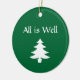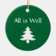 Decorate the holidays with spirits of well wishes! A beautiful holiday ornament with 'All is Well' and a Christmas tree on one side, and 'Merry Christmas' on the other. This product is also customisable!