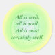 A painted blended background of green, blue, and yellow, with the affirmation, "All is well, all is well. All is most certainly well," printed on stickers. Can be customise with a different affirmation or message of your choice. Thank you for shopping CherylsArt on Zazzle: http://www.zazzle.com/CherylsArt*/