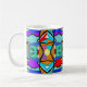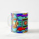 I created this very colourful design for a mug in order to have a very cheerful cup of coffee or tea in the morning. It is a unique art work created with the idea that everyone should have fine art in their life every day. The primary colours and the pattern remind me of tribal art but it is also very much like jazz, lively and expressive.