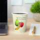 Yummy! These cool paper cups feature an original digital painting by Leslie Sigal Javorek that's retro-stylised, with a trio of fruit "stickers" set against an egg-shell coloured vinyl tablecloth and the caption, "All Life's a Picnic to be Enjoyed!"