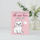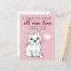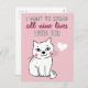 This romantic Valentine greeting card features a white and lovely cartoon cat on a pink background with a white heart.