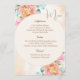 This menu card template is perfect for any special occasion you may have and is shown in a lovely floral print in pink and peach colours, text shown in brown tone colours.