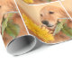 Add a little golden retriever cheer to your packages with this cute wrapping paper! Design features a photograph of a golden retriever dog who is holding a yellow flower in his mouth. Perfect for any occasion. Matching greeting card also available.