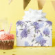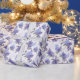 Wrapping paper is shown with a lovely blue lilacs floral print.