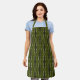 Ribbons of silver and ribbons of black undulate through panels of olive, army green and pea green. A little art nouveau and a little mid-century modern, this computer-generated design is a visually striking way of bringing yellow greens to this wonderful all-over print apron.