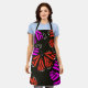 Butterfly apron. Vibrant color Monarch Butterflies in pink and orange with a black background.