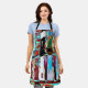 Cook, bake, and create in bold energy with the Collapse Reflection All-Over Print Apron, featuring a vibrant abstract composition of vertical and horizontal streaks, layered textures, and glowing outlines. With bold contrasts of red, blue, green, black, and white, this design evokes motion, emotion, and complexity — a visual metaphor for collapse and rebirth.