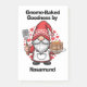 Gnomes know how to cook great food, cooking and eating are their favourite pastime. In one hand this gnome holds a silver spatula with a wooden handle, and in the other, he holds a white plate stacked with several pancakes, topped with syrup and a pat of butter.