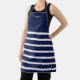 Stylish horizontal white stripes on navy blue apron, and your own name and special words printed on it