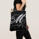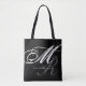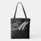 A stylish black tote bag with your name and initials monogrammed in a script font style