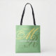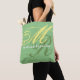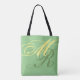 A stylish sage tote bag with your name and initials monogrammed in a script font style