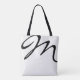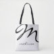 A simple and stylish white tote bag with your name and initials in a black script font style