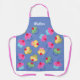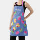 This is a really pretty all over print apron with a retro vibe, and you can personalise it with your name in white script. The apron has a pattern of yummy cupcakes, with a blue background. The straps are in a co-ordinating shade of pink. The cupcakes have been drawn, and are in vintage shades of pink, green, blue and yellow. It is perfect for anyone who loves to bake.