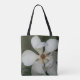 It's amazing to think that magnolia found in fossils dates as far back as 58 million years ago. Some believe that it was the Ice Age that decimated European magnolias. Magnolias are truly a majestic tree, associated with beauty, dignity and nobility. Though there are numerous varieties and species of magnolia, 90 in the United States, alone, this is the Southern Magnolia. It is the official state tree of Mississippi and the official state flower of Mississippi AND Louisiana. Of all the information gathered about this magnificent tree, there are a couple of truly astonishing titbits: unusually deep tap roots allow the tree to withstand most hurricanes in the prone areas in Mississippi and Louisiana; and the bark is fire-resistant, it doesn't burn like most other tree bark. Wide open, sweetly fragrant magnolia blossoms measure up to 8 inches across. This gorgeous tote offers two different views of this stunning bloom and makes an excellent Mother's Day, birthday or Christmas gift.