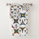 This towel set has a mid-century modern design of four-point and three-point stars in retro colours.