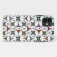 This phone case has a mid-century modern design of four-point and three-point stars in retro colours.